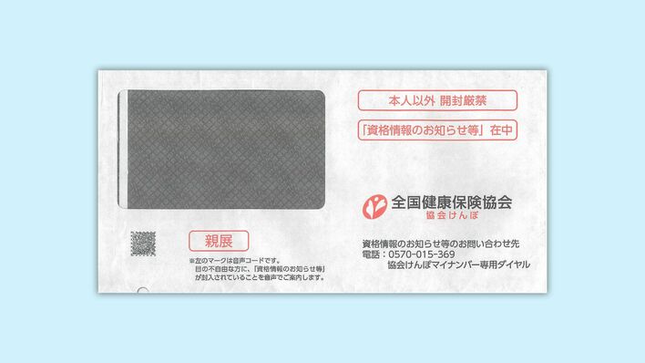 「資格情報のお知らせ」が送られてくる封筒