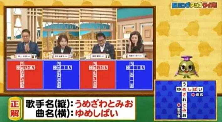 <『脳ベルSHOW』クイズ>曲名とその曲を歌っている人物でクロスワードを完成させよ!