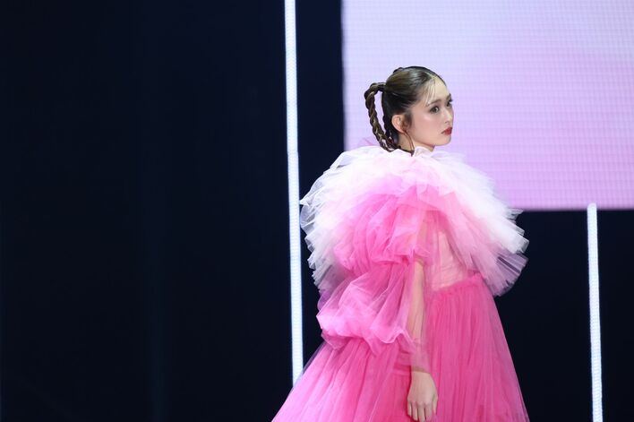 中条あやみ ゴージャスなドレス&ゴールドなブーツで圧巻のランウェイ!見事なウォーキングを披露【マイナビ TGC 2025 S/S】