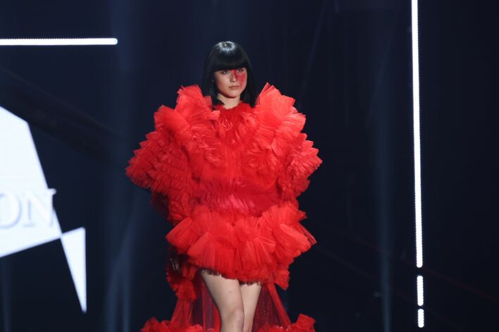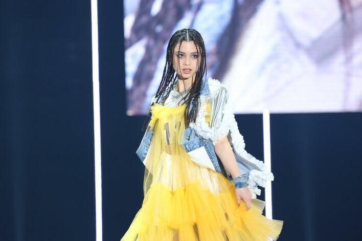 中条あやみ ゴージャスなドレス&ゴールドなブーツで圧巻のランウェイ!見事なウォーキングを披露【マイナビ TGC 2025 S/S】