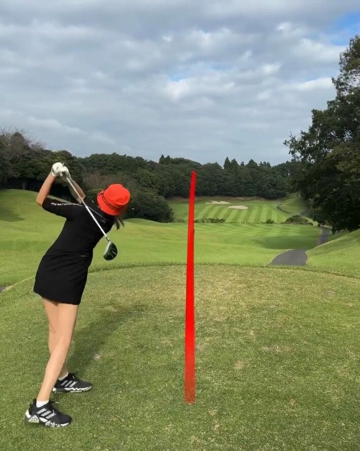「スタイル良すぎる」横山ルリカ “ミニ丈ワンピ”のゴルフウェアで美脚披露 ナイスショット公開に「スイングがサマになってる」