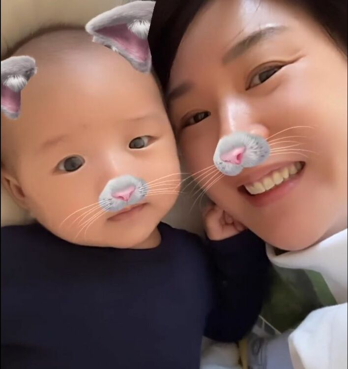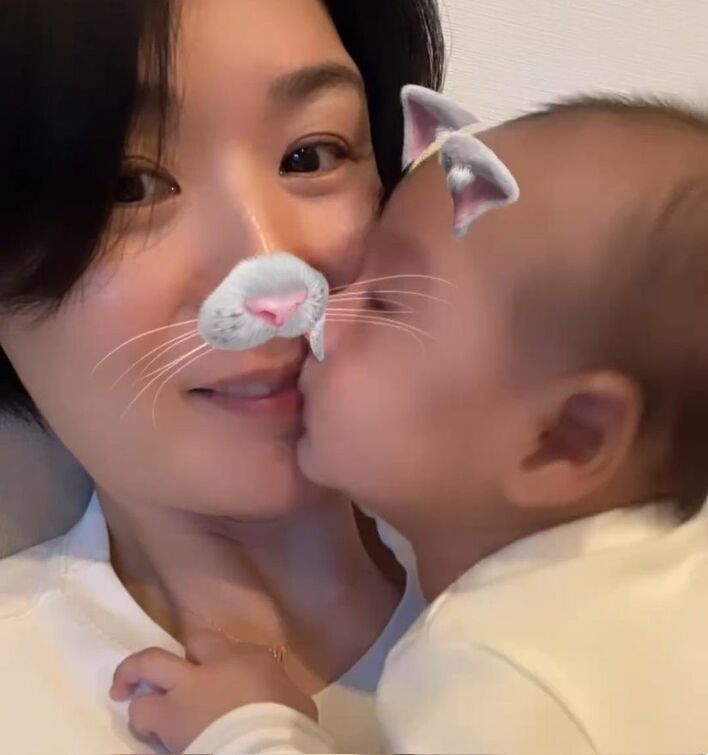 「あぁ、かわいいっ」栗原恵 生後3ヵ月の息子からの情熱的なキスにメロメロ!2人の密着ショットに「天使の極み!」と反響