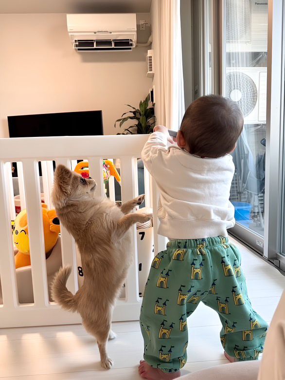 「通じ合ってる…」赤ちゃんにお手本を見せるお姉ちゃんワンコに癒やされる人続出!「教え上手の見守り上手!」【激かわキッズ&アニマル奇跡の瞬間】