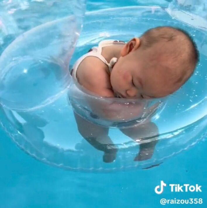 「急なシャットダウン!(笑)」プールデビューで寝落ちする赤ちゃんが「可愛すぎる」と話題!【激かわキッズ奇跡の瞬間】