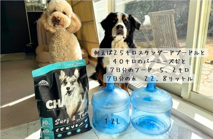 7日分のフードと飲み水(小野さんの愛犬たちの場合)