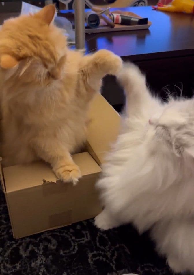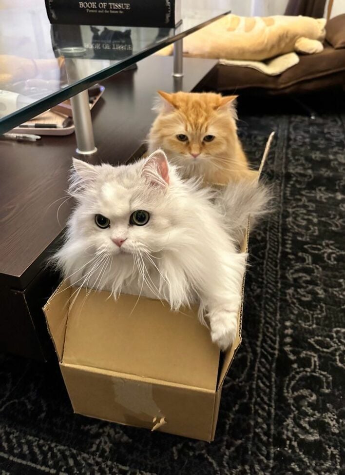 仲良く箱に入るノーマンくんとエマちゃん 提供:ネコランド