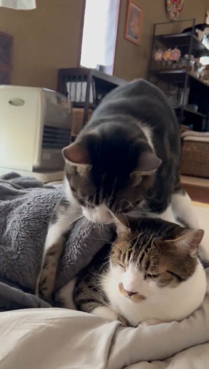 「こんな光景見た事ない!」仲間思いの猫が見せた驚きの行動に癒される人続出!「こんな優しい子がいるん?!」【激かわアニマル奇跡の瞬間】