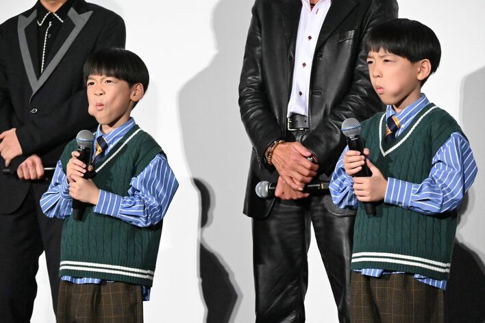 左から:室井慎次のモノマネをする前山くうが、前山こうが