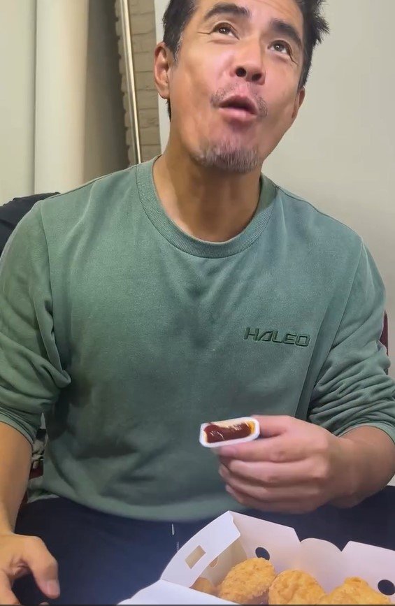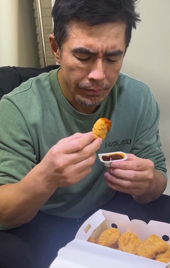 「その手があったか!」伊藤英明がチキンナゲットを頬張る “まさかの食べ方”に「なんでそんなかわいいの」と反響