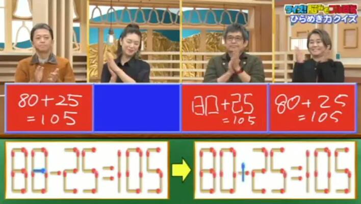 <『脳ベルSHOW』クイズ>式を成立させるために動かすべきマッチはどれ?