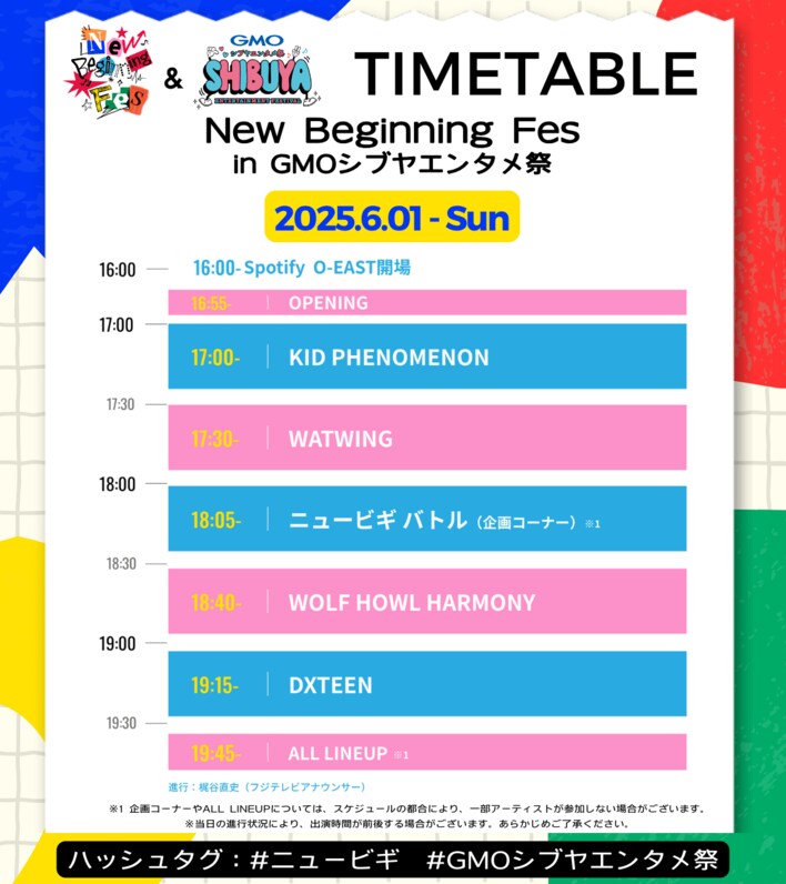 n.SSign、DXTEEN、KID PHENOMENON、WOLF HOWL HARMONYら出演『New Beginning Fes in GMOシブヤエンタメ祭』タイムテーブル公開