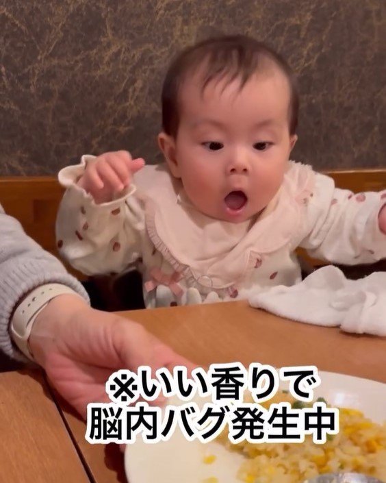 「最後まで笑えた」初めて嗅いだご飯の香りに“脳内バグ”発生?!生後7カ月の赤ちゃんが見せた最高のリアクションに反響「これが食への目覚め…」【激かわキッズ奇跡の瞬間】