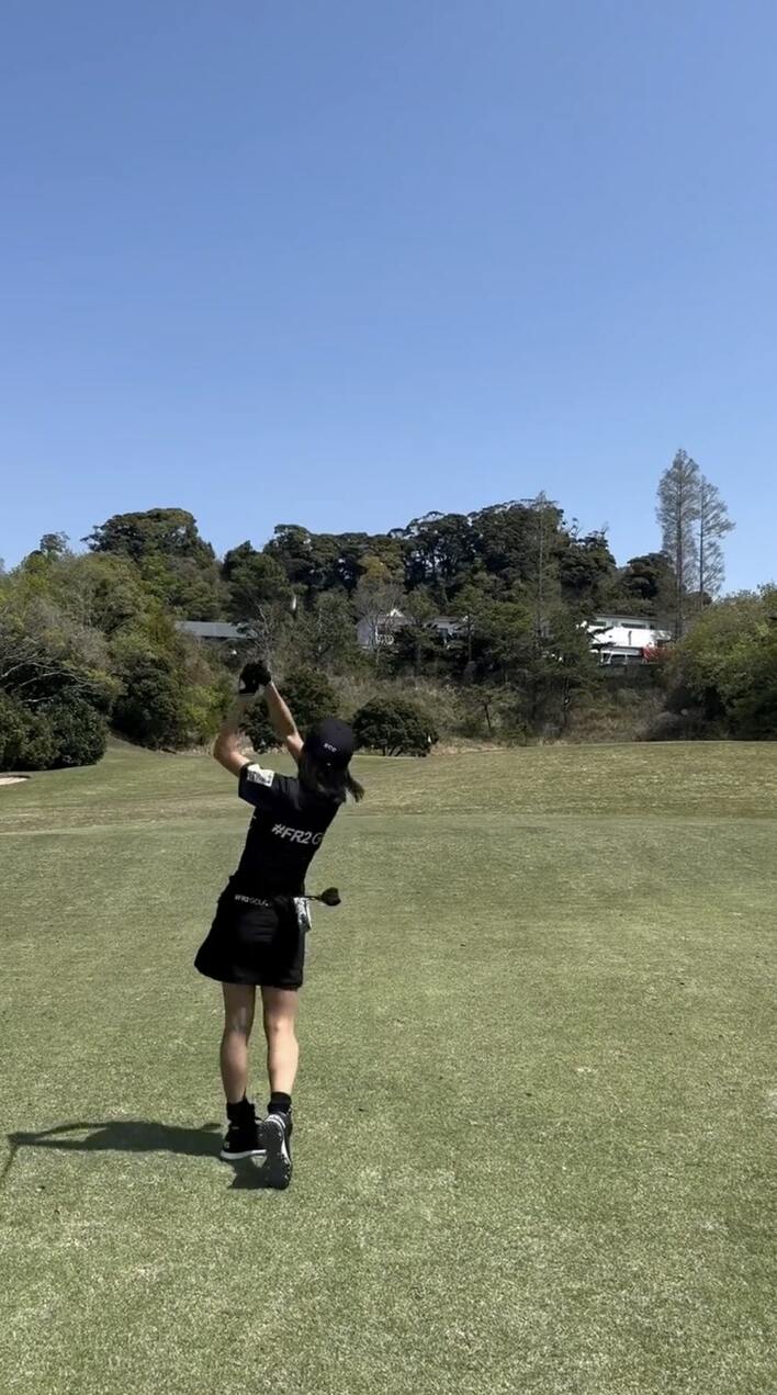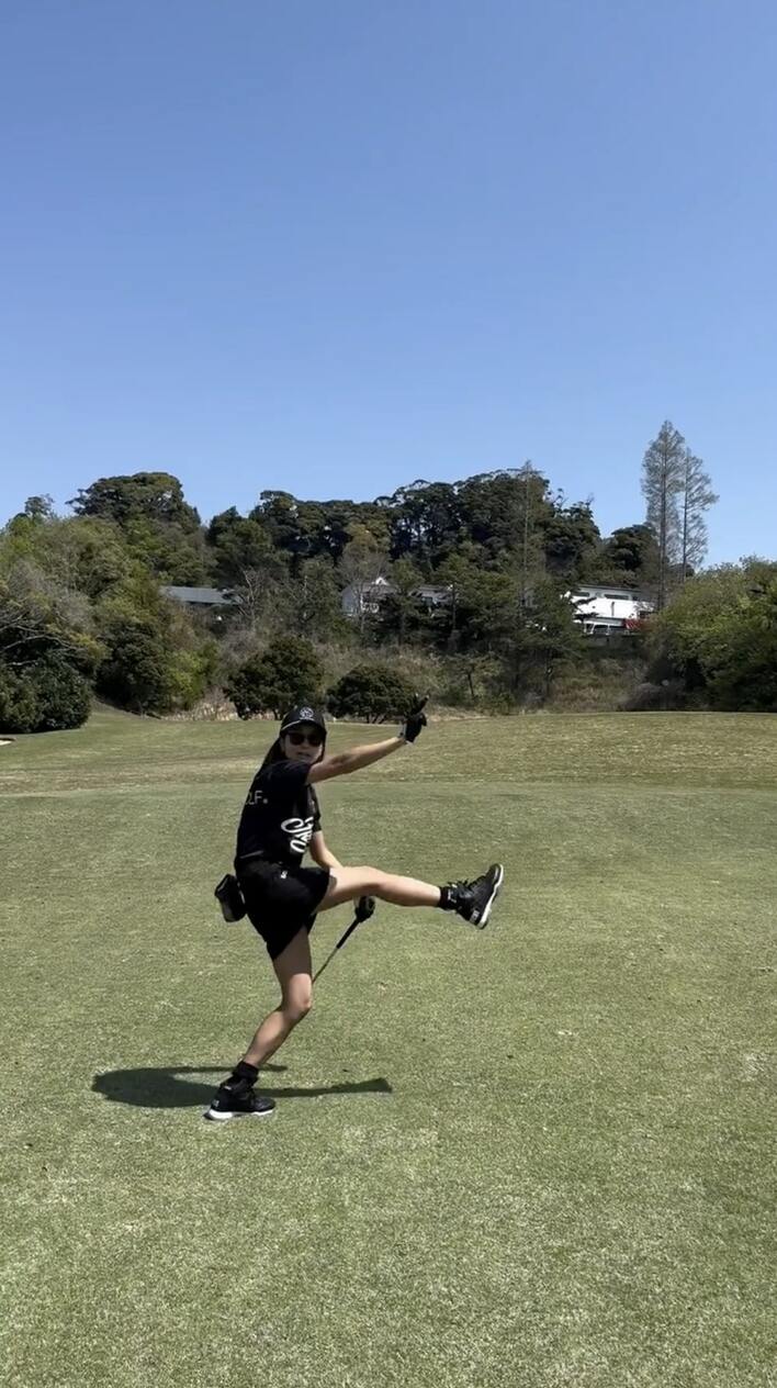 「めちゃ上手い」みちょぱ ミニ丈ウェアで豪快なゴルフショットを披露!キレイなスイングを決めた後には…おちゃめなポーズにも注目
