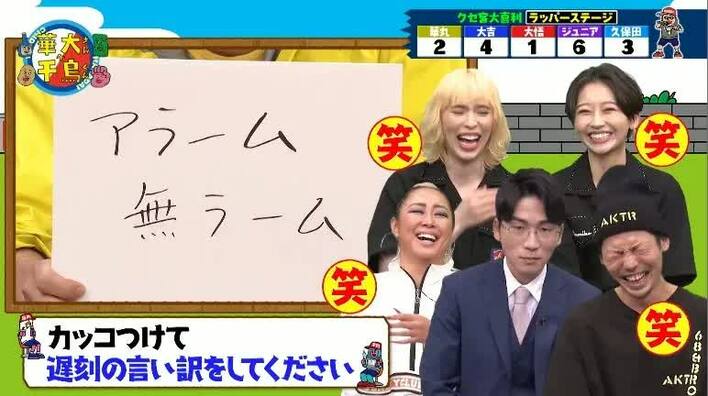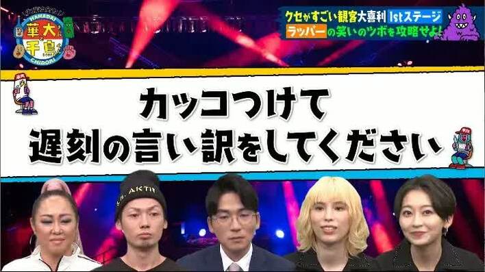クセ客ラッパーを笑わせろ!カッコつけた遅刻の言い訳は?「アラーム無ラーム」「野望、希望、寝坊」華丸の才能が開花