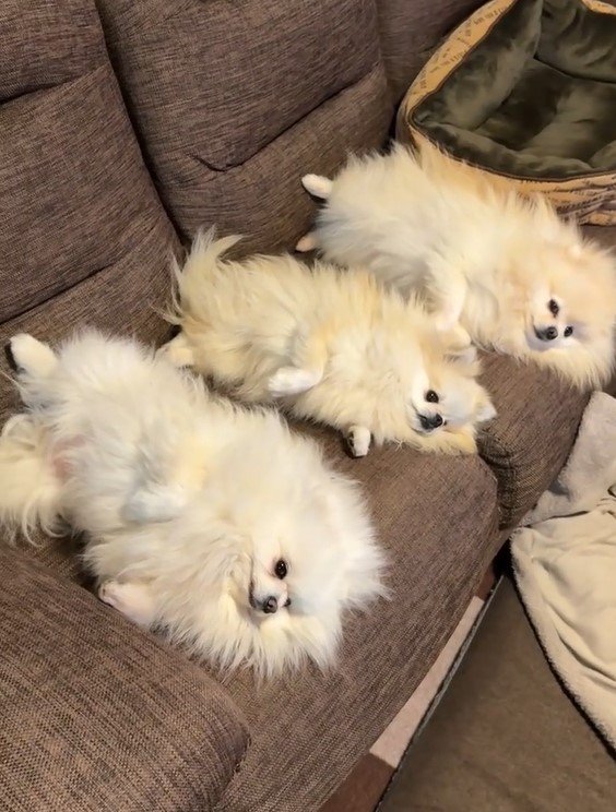 「もふもふ勢揃いで笑える」ポメラニアン三姉妹の見事なシンクロ姿が話題 同じ体勢で寝転ぶ光景に「かわいいのコピペ?」【激かわアニマル奇跡の瞬間】