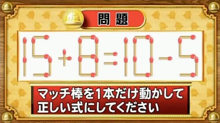 <『脳ベルSHOW』クイズ>式を成立させるために動かすべきマッチはどれ?