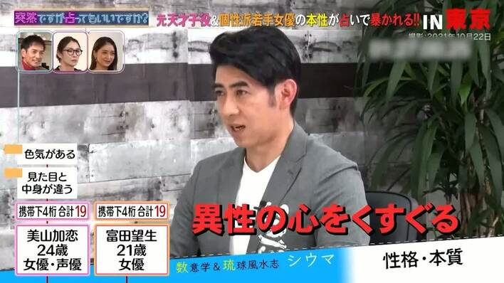 美山加恋は「ビール好き」、富田望生は「異性の心をくすぐる」!シウマが『突然占い』で性格診断