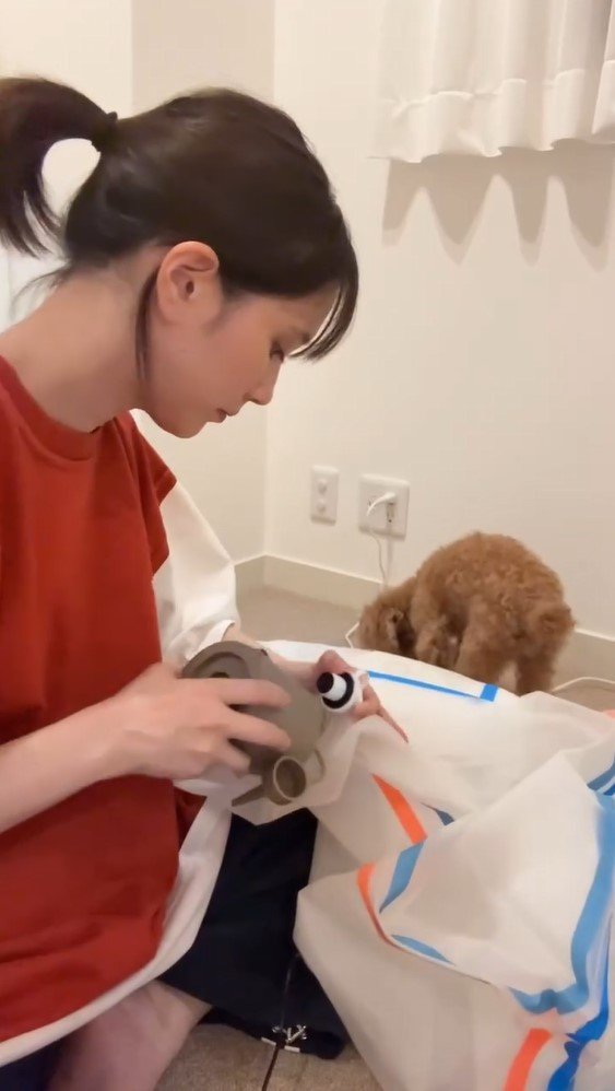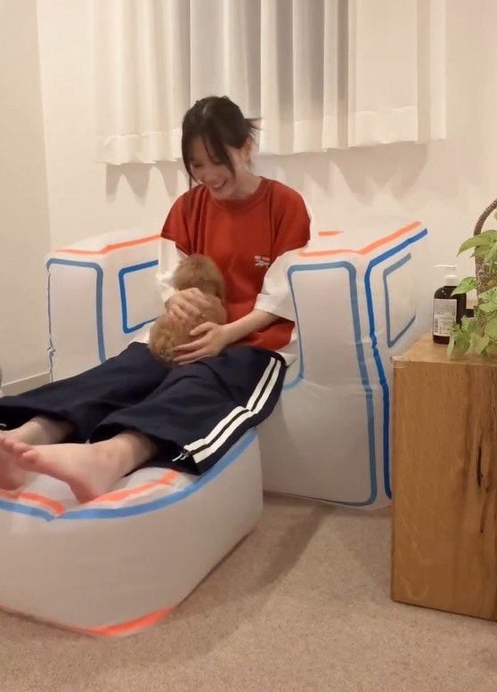 「寝る前に突然…」本田翼 部屋で衝動的にエアソファを膨らます様子公開!愛犬が見守る中で楽しそうに作業する姿に「素敵すぎ!」