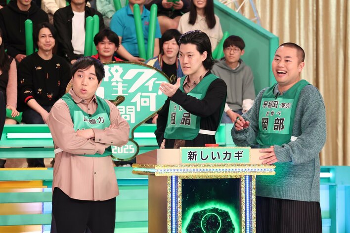 「高校生クイズ何問目?」 左から)せいや、粗品、岡部大