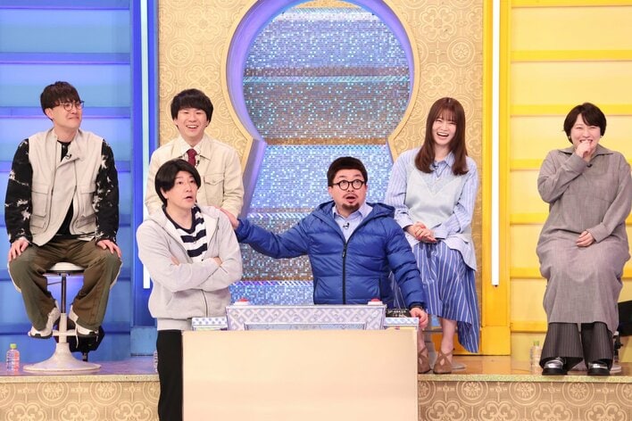 「名曲大好き!土八先生」 左から)岡部大、秋山寛貴、菊田竜大、松尾駿、長田庄平、粗品、せいや