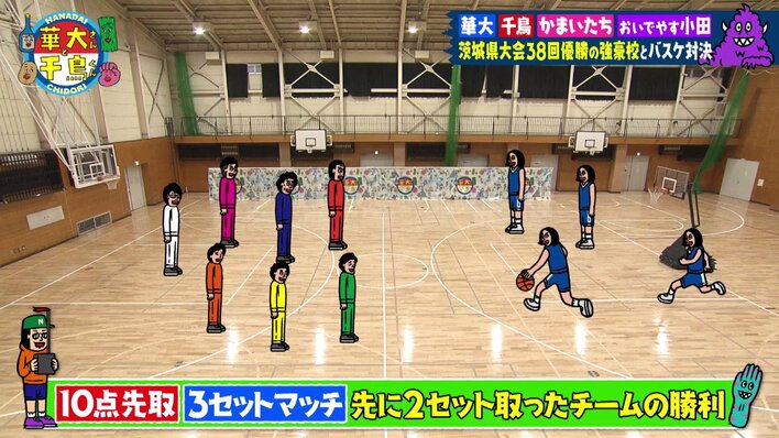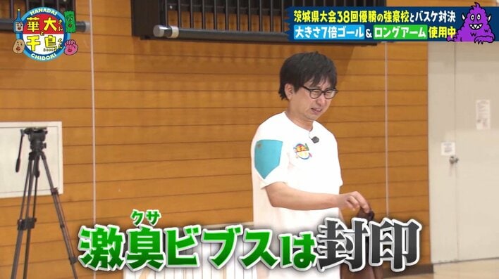 激臭(げきくさ)ビブスは最終兵器=お助けアイテムとならず!強豪校チームとのバスケ対決で着用した、おいでやす小田に冷ややかな目