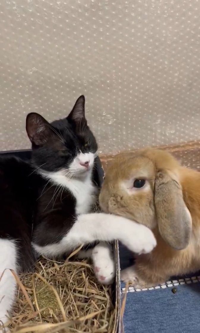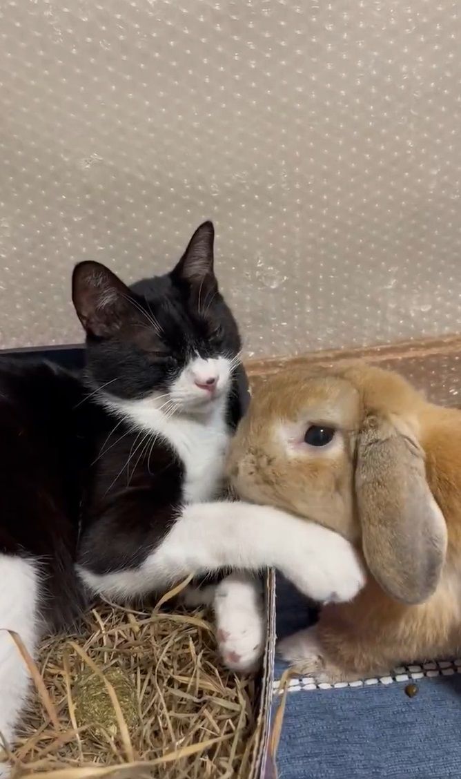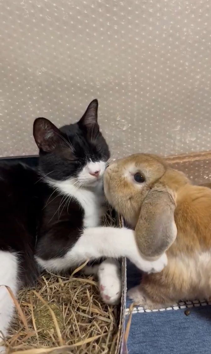 好きすぎてたまらない!一生懸命“キス”するも猫に塩対応されるうさぎが話題 「この2人の絆は強い」【激かわアニマル奇跡の瞬間】