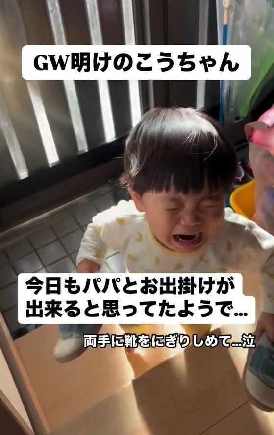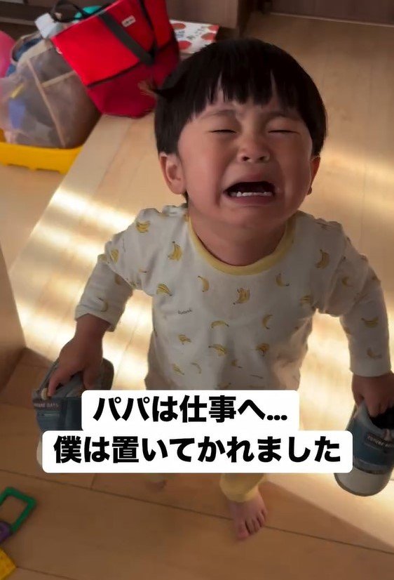 パパと遊べず大号泣!1歳児の姿に「愛おしい」と反響 そっと靴を置く姿はまるで“引退公演の山口百恵!?”【激かわキッズ奇跡の瞬間】