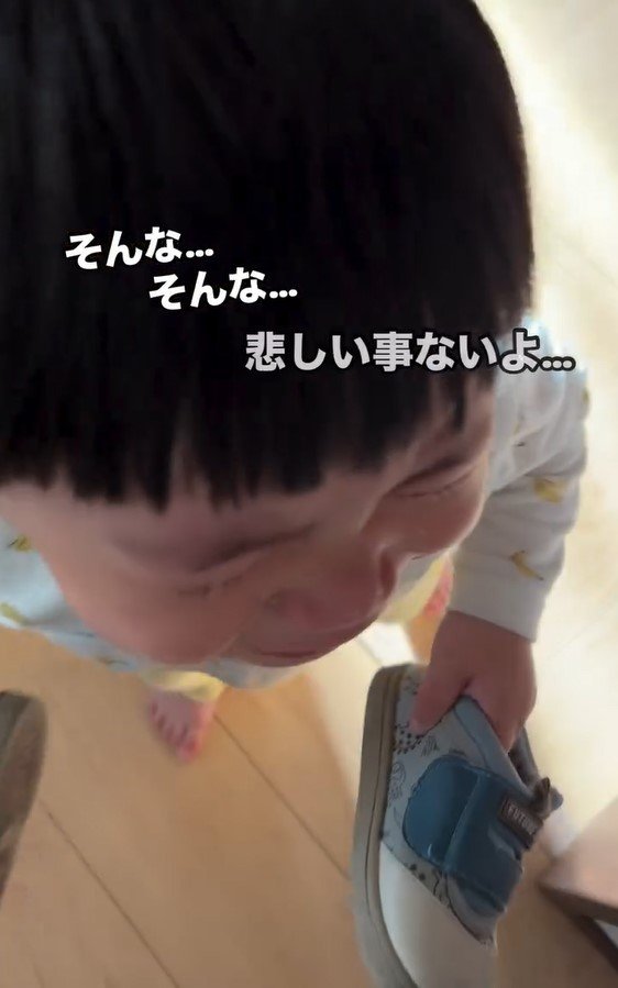 パパと遊べず大号泣!1歳児の姿に「愛おしい」と反響 そっと靴を置く姿はまるで“引退公演の山口百恵!?”【激かわキッズ奇跡の瞬間】