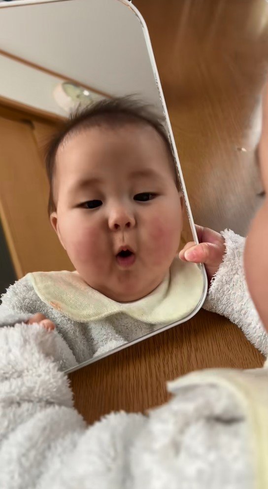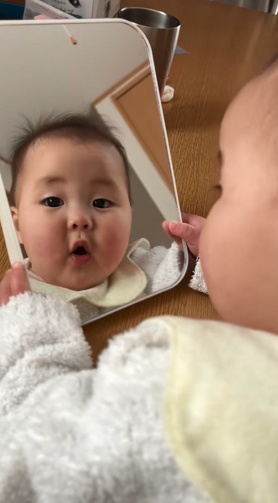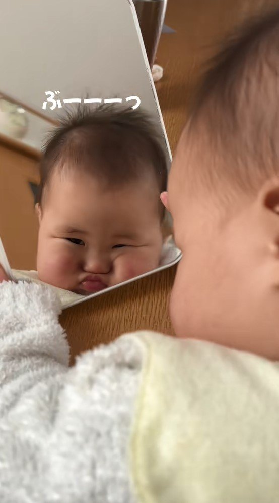 まるで“こびとづかん”!?鏡に向かって“変顔の練習”をする1歳の女の子が話題!ママを笑わせようとする姿に「ほっぺの破壊力やばい」【激かわキッズ奇跡の瞬間】