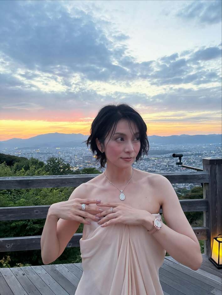 「まさに大和撫子」柴咲コウ オフショルドレスで美コルテ披露!夕焼けを背に絵画のような佇まい…美しすぎる姿にファン釘付け