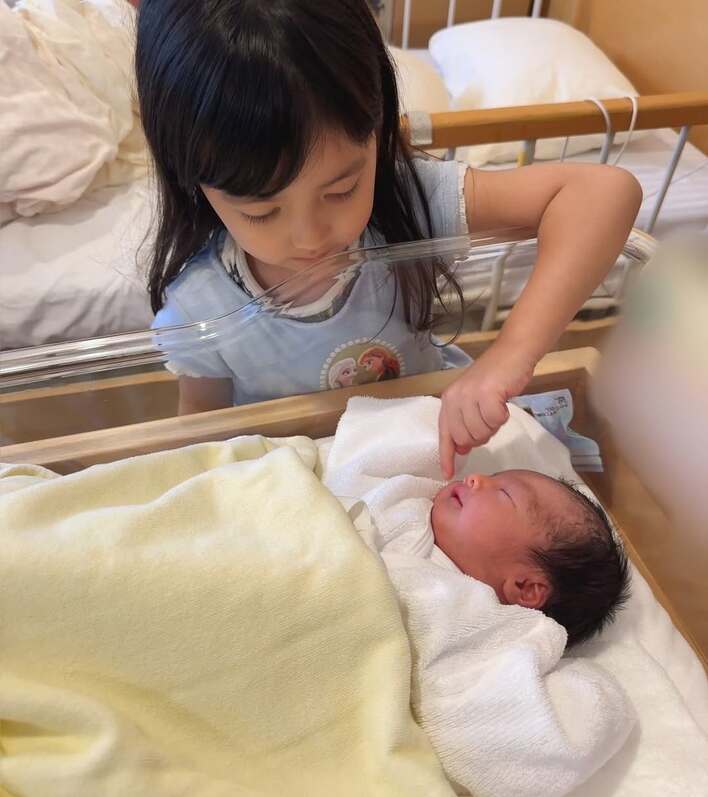 川崎希 “生後1日目”の次女に長男&長女が会いに来た様子を公開!生後0日~2日の成長する姿も披露し「希さんとアレクさんにそっくり」「天使ちゃん」と反響
