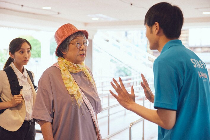 左から)森野礼(堀田茜)、日向松子(梅沢富美男)