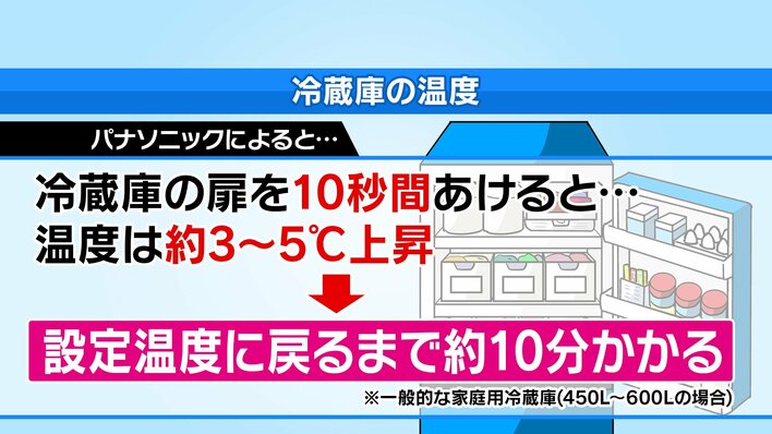 冷蔵庫を10秒開けておくだけで庫内は3〜5℃上昇!意味もなく冷蔵庫を開ける夫たちにスタジオ女性陣から大ブーイングが!