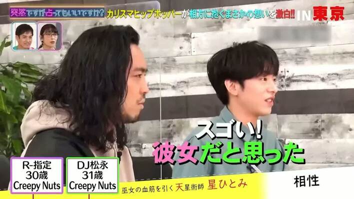 Creepy Nutsの婚期を星ひとみが占い鑑定「35歳。R-指定さんのほうが先に結婚する」