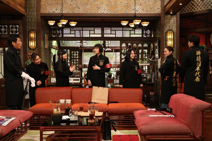 左から)明石家さんま、RIN、MIZYU、SUZUKA、KANON、堀田真由、磯村勇斗