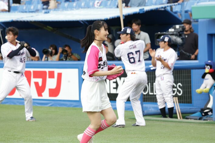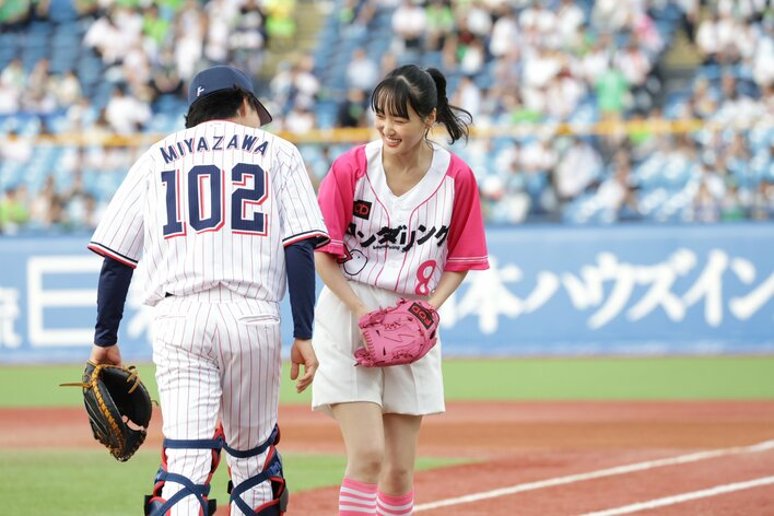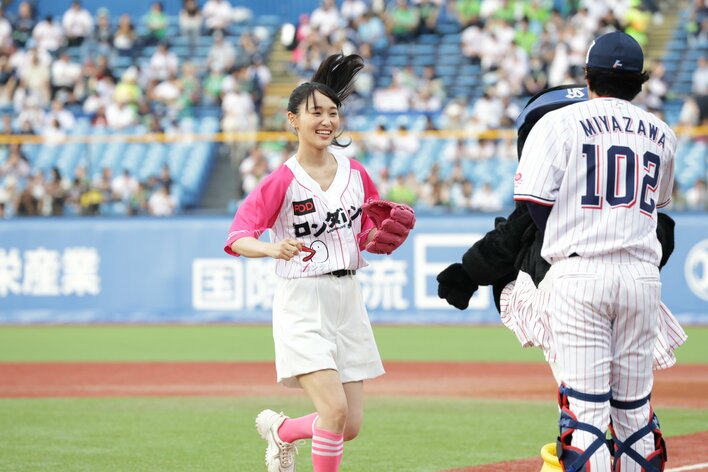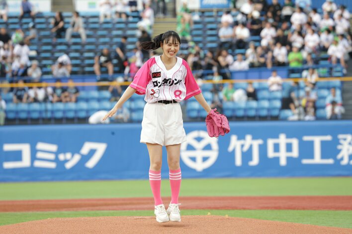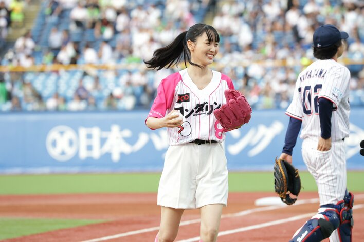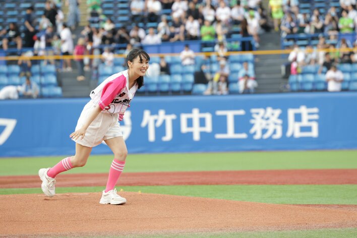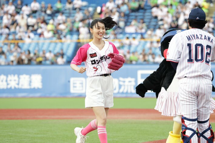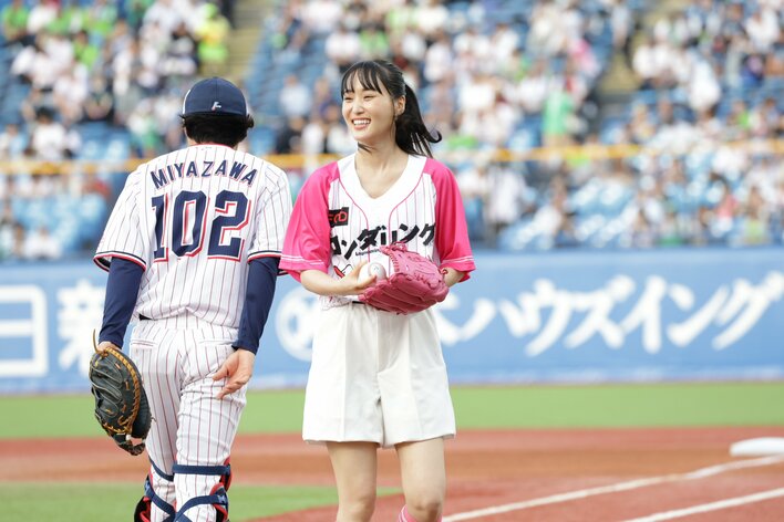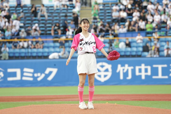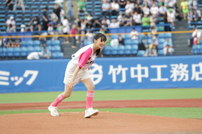 元櫻坂・菅井友香 ピンクユニホーム姿で“リベンジ”始球式もワンバン投球!悔しそうに何度か跳ねるも爽やか笑顔を見せる