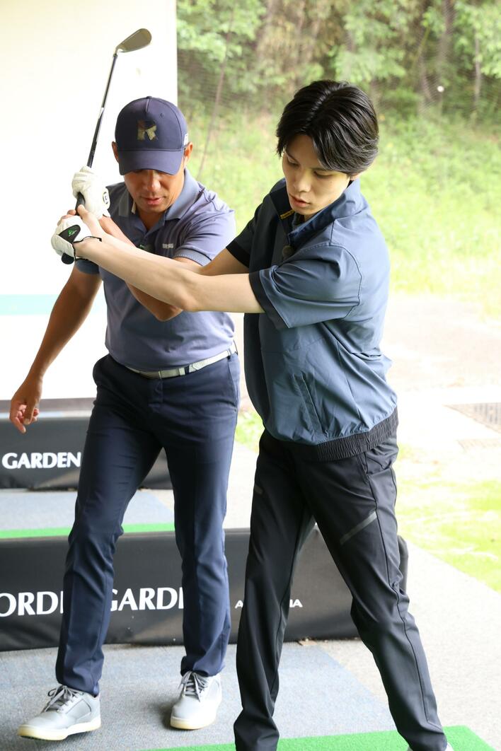 滝に打たれる2人