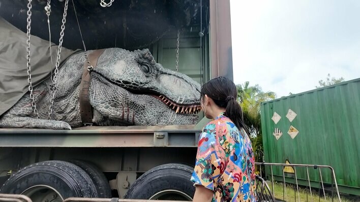 ジャングリア沖縄 体験取材!迫り来る“最凶の肉食恐竜”&バギーで大自然を疾走 フジ高崎春アナも大興奮!
