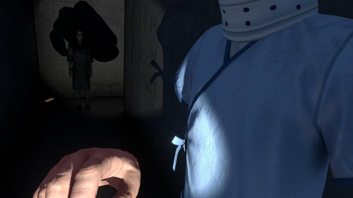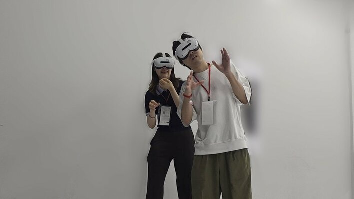 一緒に参加した男性スタッフのアバターの後ろに“髪の長い女性”が