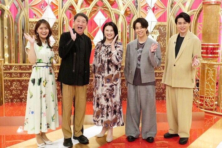 左から)井上清華(フジテレビアナウンサー)、高橋茂雄(サバンナ)、島崎和歌子、北山宏光、吉村崇(平成ノブシコブシ)