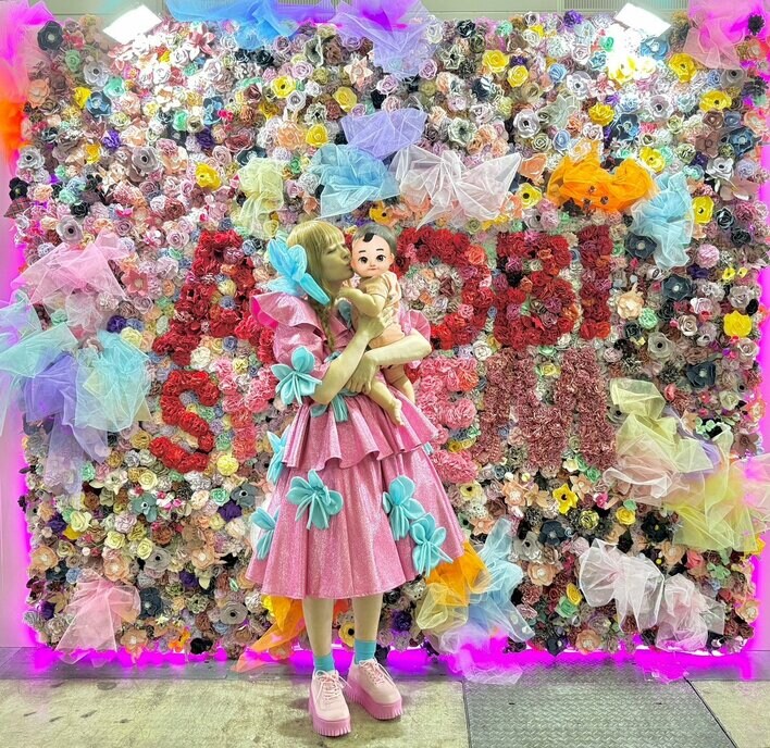 きゃりーぱみゅぱみゅ 0歳ベビーへのキスショットを公開!復帰ライブ後のポップな新衣装で我が子を抱く姿に「素敵な一枚」