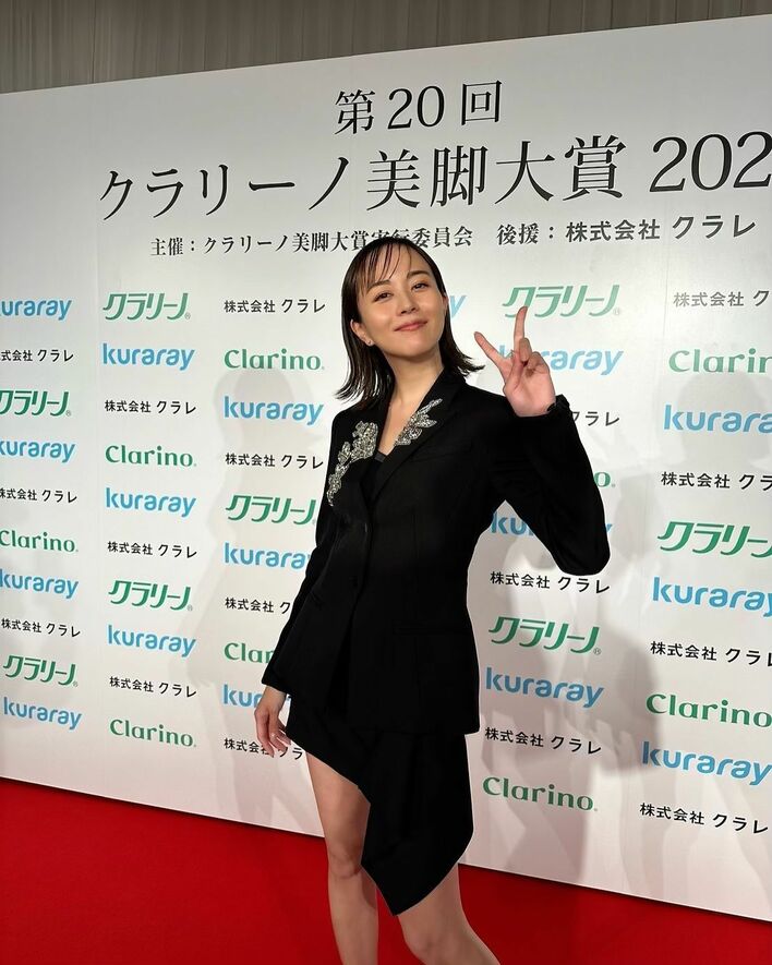 【美脚大賞2024受賞】比嘉愛未「嬉し恥ずかし」ミニ丈スカートの美脚ショットに「キレイすぎ」「惚れ惚れする」