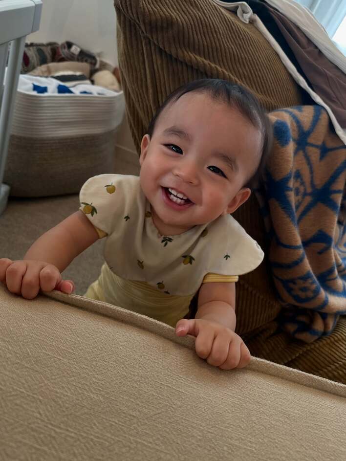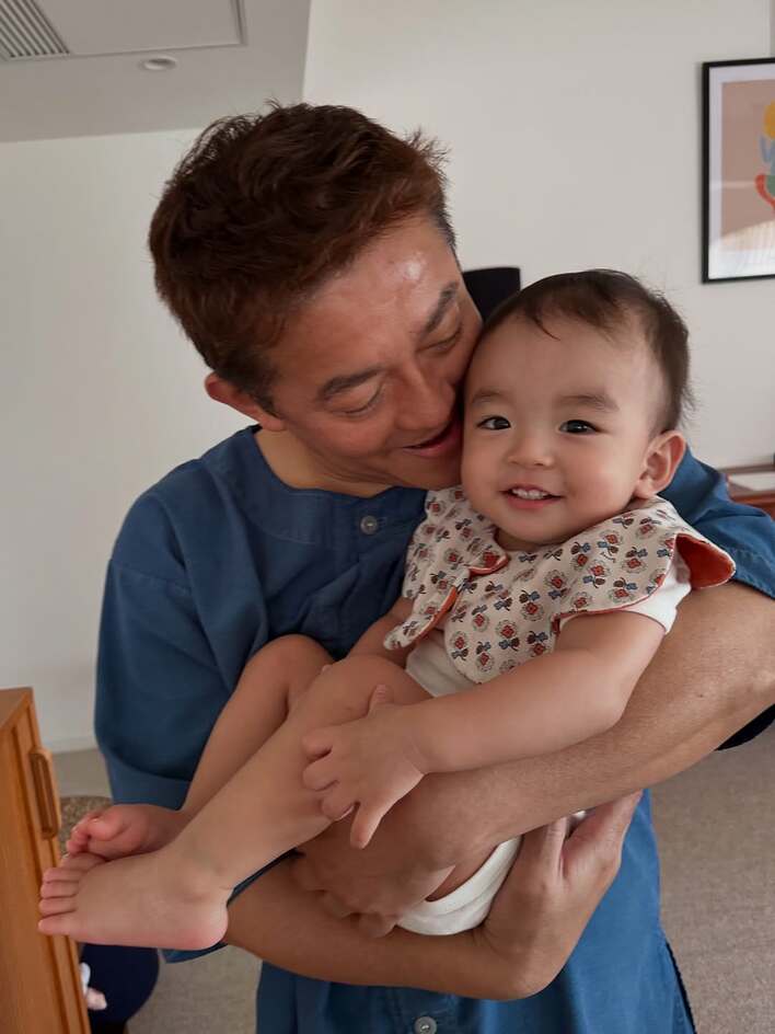 「胎動も感じるように」第2子妊娠中の蜂谷晏海 夫・井戸田潤が“ベビバーグ”を抱きしめる愛らしい親子ショットを披露「癒されます」