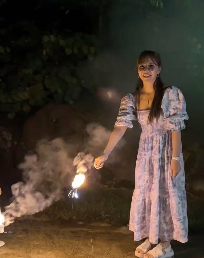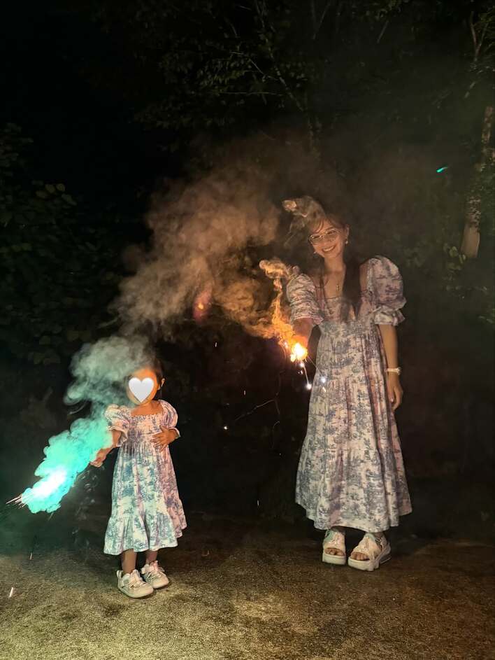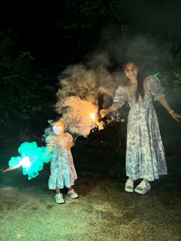 元AKB48・河西智美 3歳娘とペアルック姿で初の手持ち花火を満喫!「可愛い♡」「お子さんと楽しそう」