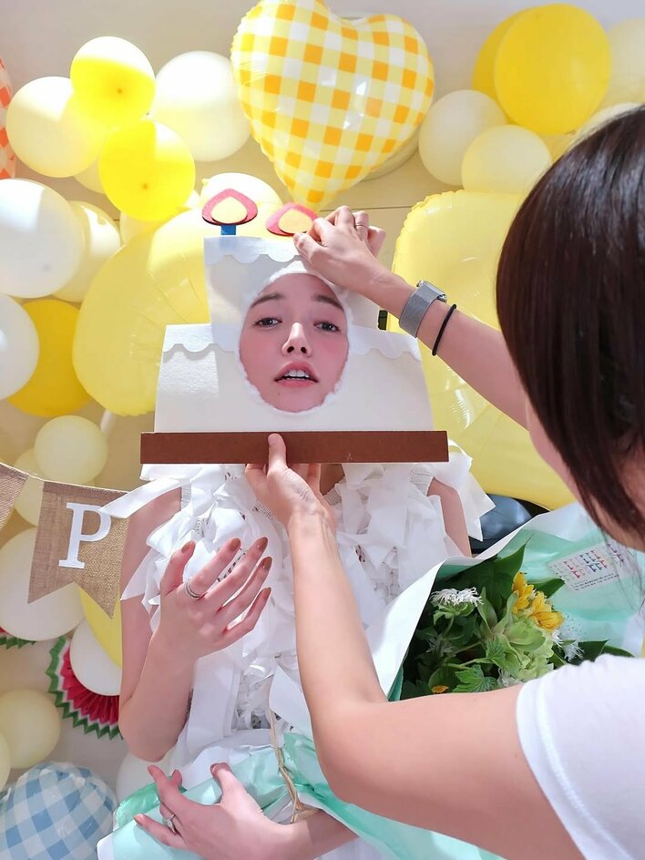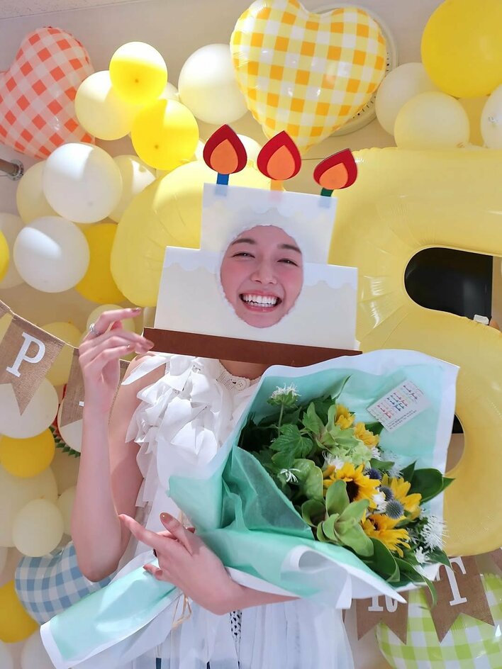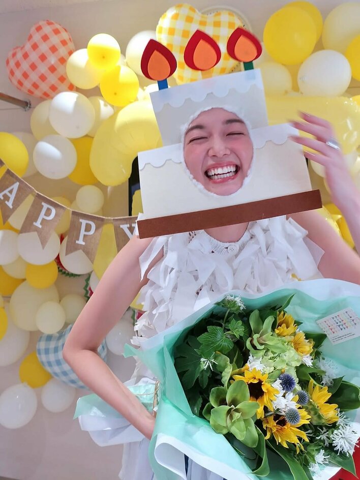 「世界一似合う」佐藤栞里 “ケーキのかぶり物”姿で35歳誕生日をお祝い!顔をすっぽりはめた幸せあふれる笑顔に「天使すぎる」