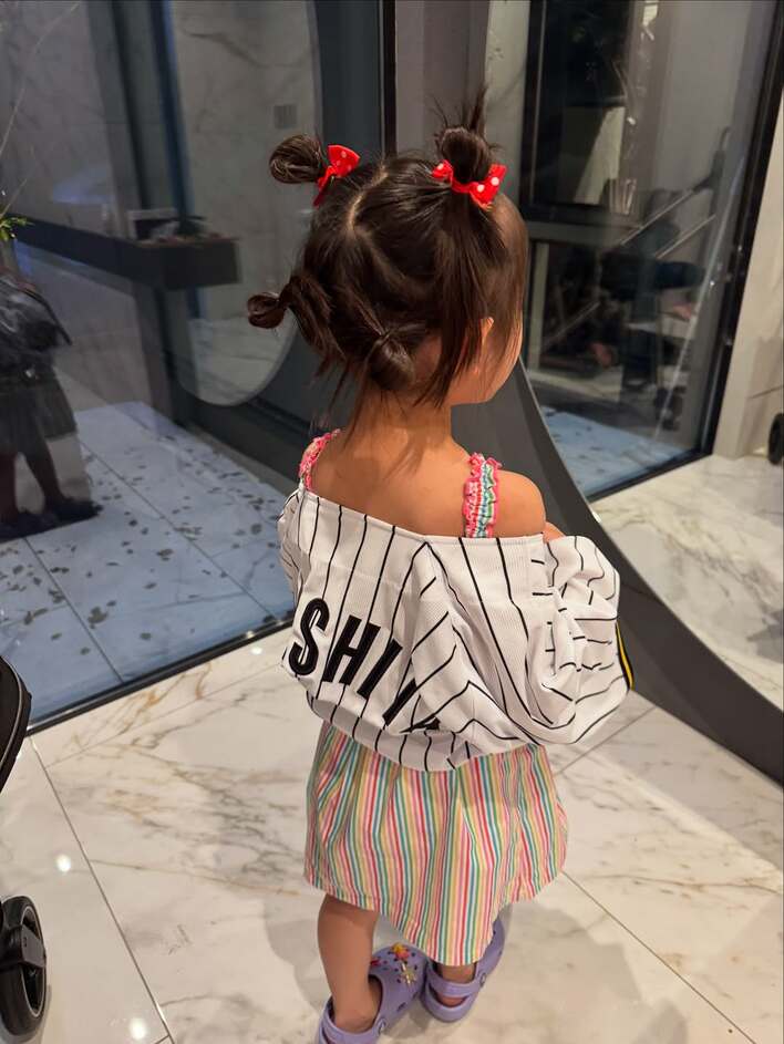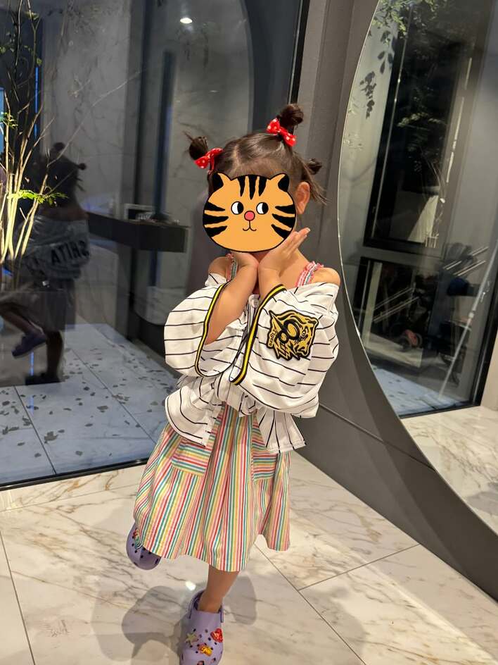 「夫のTシャツを借りパク」2児の母・菊地亜美 大きめトップス姿で子どもとの2ショットを披露! 娘の肩出しコーデも