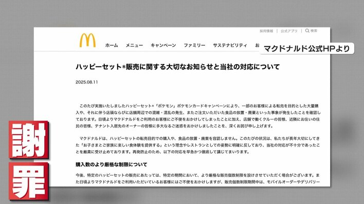【物議】マクドナルド「ポケカ」騒動で謝罪 フード大量廃棄の現場 武田鉄矢氏「不愉快…捨てるなんて発想がない」