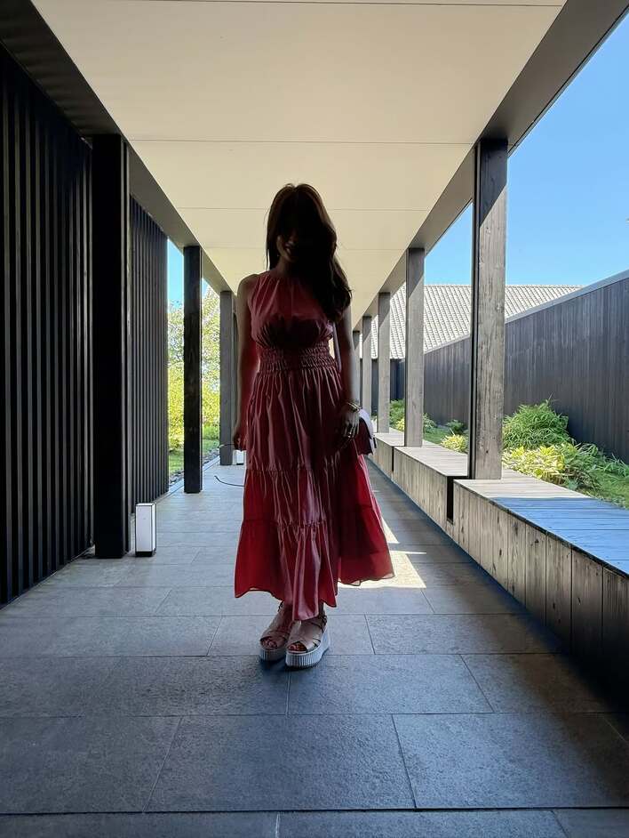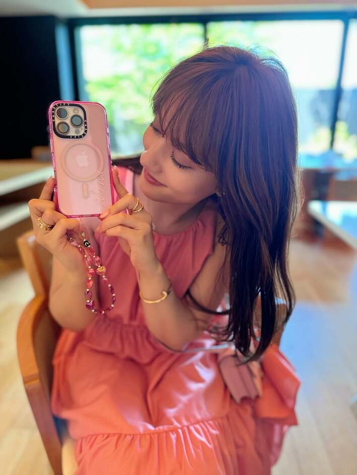 「美味しそうに飲むねぇ」谷まりあ ビールぐびぐびショット公開!ショッキングピンクのノースリーブワンピ姿で乾杯「いい顔!」