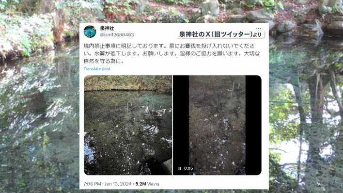 「さい銭投げないで!」泉龍木で有名な泉神社が注意喚起… “平成の名水百選”の水質悪化を懸念