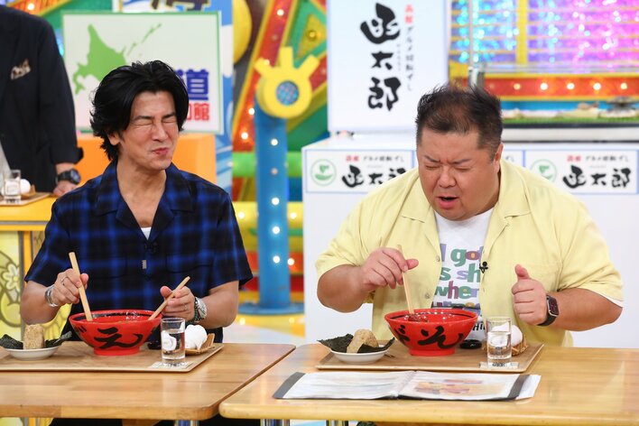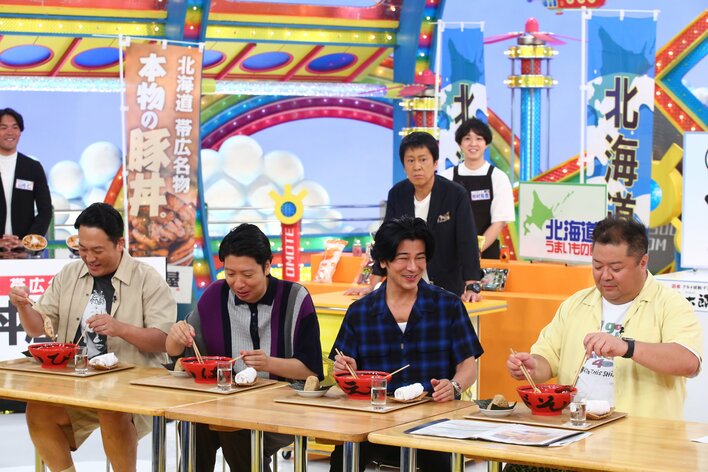 左から)田崎佑一、トキ、武田真治、小杉竜一、吉田敬、橋本和花子